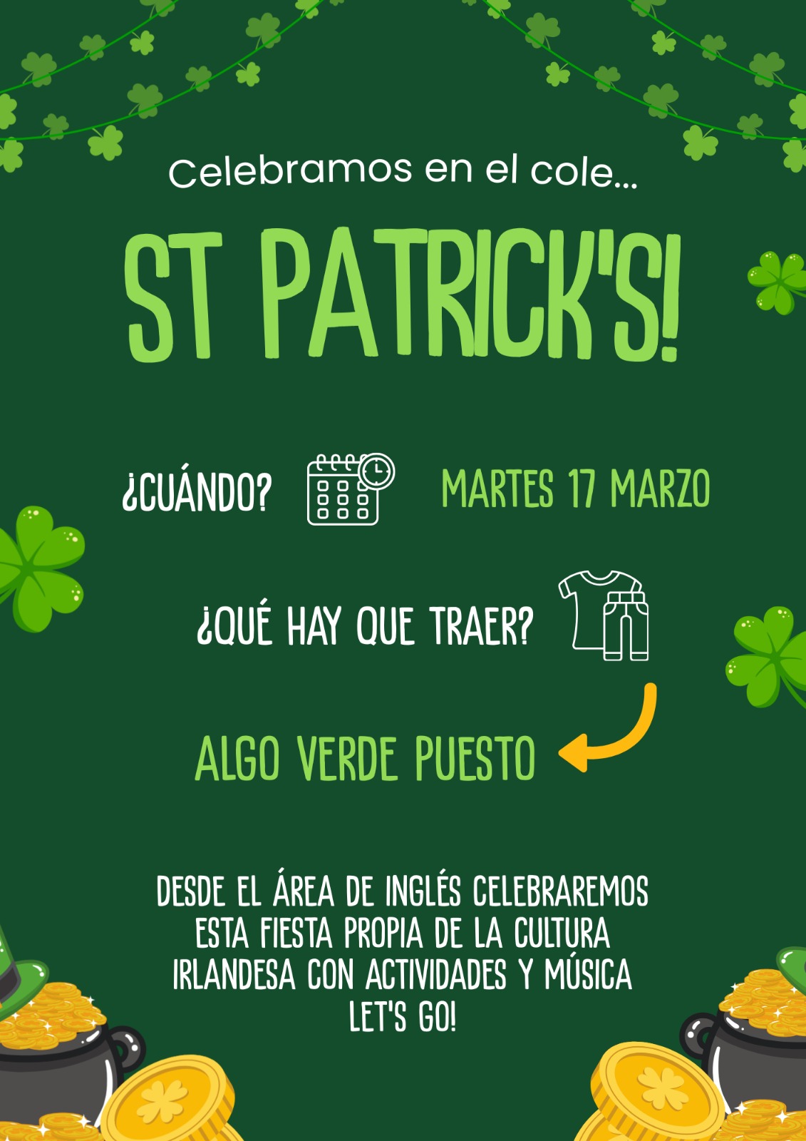 17 de marzo: celebración de St Patrick (área de inglés)