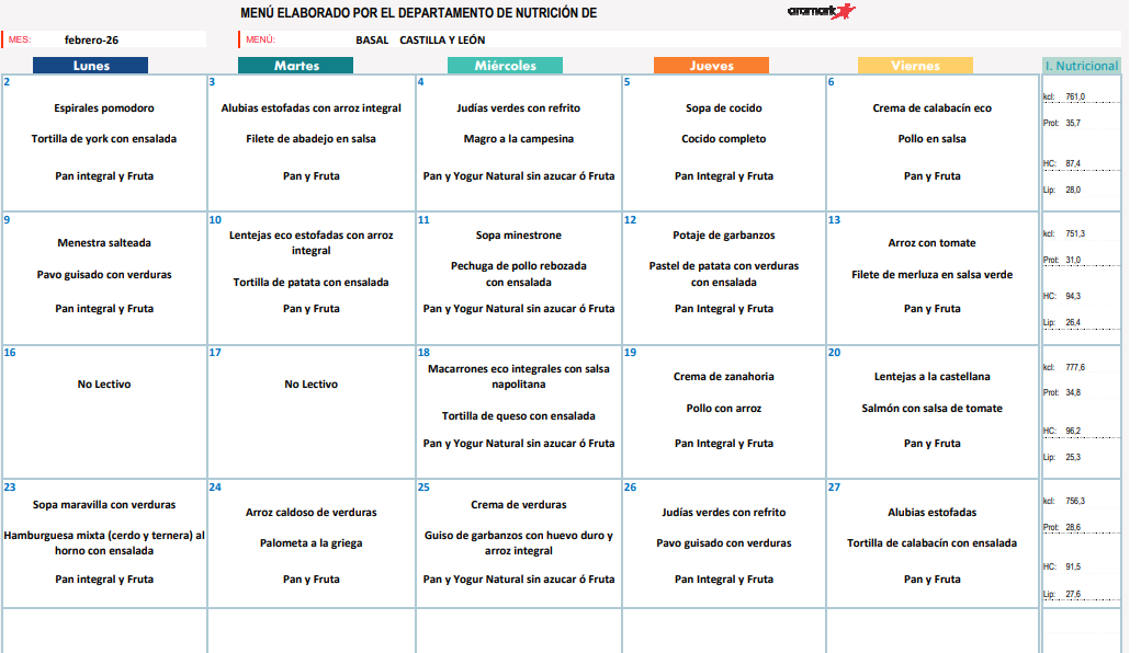 MENÚ FEBRERO 2026